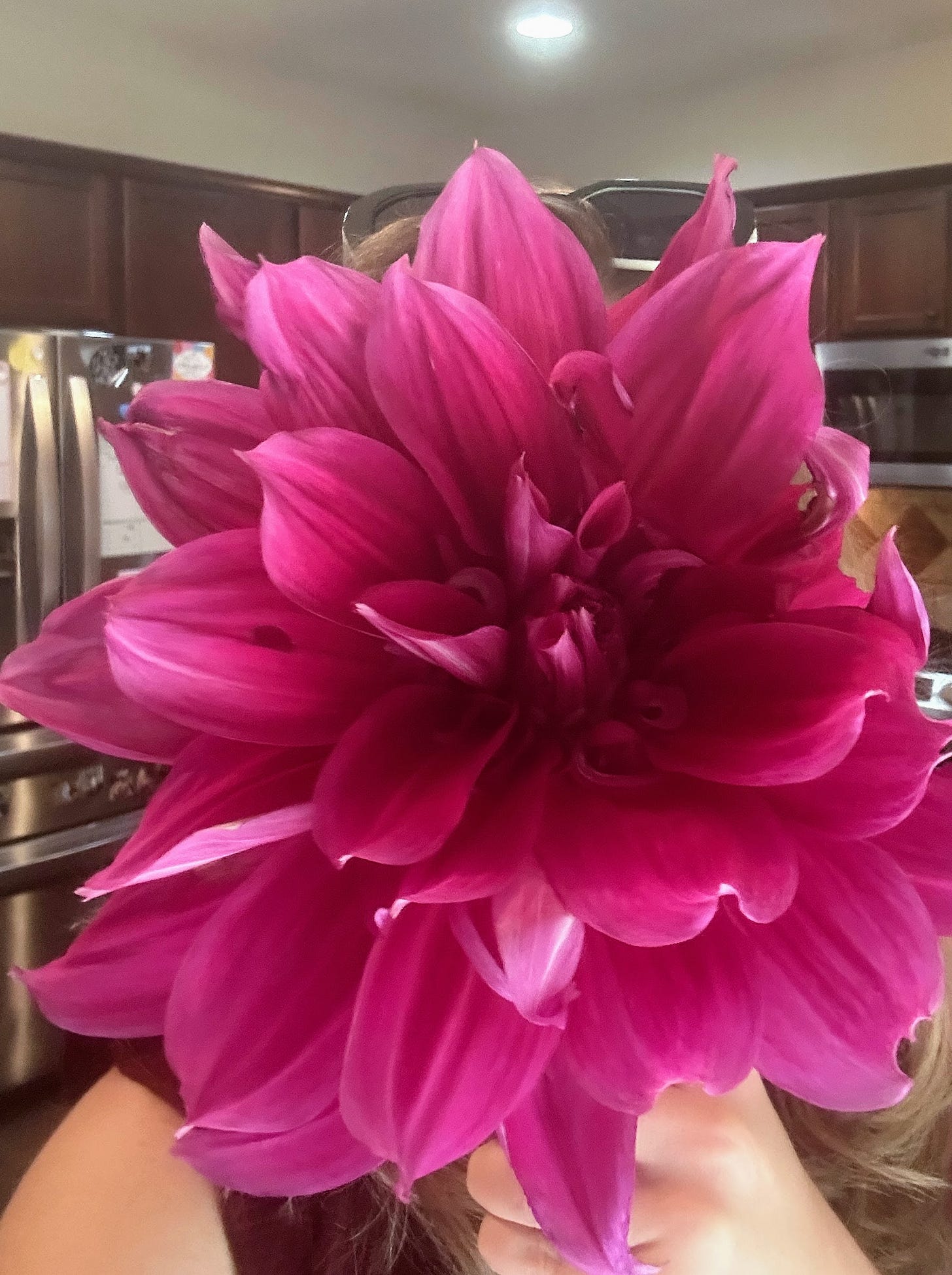 Late last spring, my beloved dahlia flower still hadn’t emerged, and I thought perhaps her time was done. I planted another bulb next to her old spot, a different variety this time. Then to my surprise, my original one emerged soon after and bloomed in late June and July as always. So now I have a late summer encore of a second one, covered in buds. The first bloom opened last week, and I could hardly believe what I saw. It is almost comically large, measuring the size of a dinner plate, and I jokingly texted a photo to someone with my entire face obscured, nothing but soft purple petals in my view. I still can’t believe it. It’s in a simple vase on my kitchen counter right now, and every morning I stare at it as I sip my coffee. That we get to live in the same world as a flower like this– it’s easy to forget beauty like that even exists. And honestly in today’s world, it feels miraculous to notice it, which I guess is my whole point in taking the time to write here today. I want to train my eyes to see it. I can’t wait to gift these miracles to other people in the coming weeks. (One only has room for so many massive blooms on the kitchen table!) They are made to share, an offering of outrageous abundance from one hand to another.